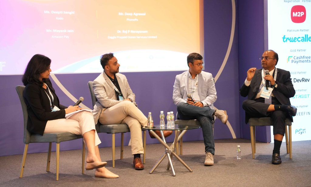 The morning opened with a powerful conversation between Dr. Raj P. Narayanam (Founder & Executive Chairman, Zaggle), Mr. Deep Agarwal (VP & Head of Payments, PhonePe), and Mr. Mayank Jain (Director – Credit Products, Amazon Pay), moderated by Ms. Deepti Sanghi (Founder, Kodo).